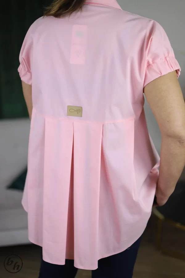 Koszula, utrzymana w luźnym, oversize'owym kroju, zapewnia nie tylko wygodę, ale także trendy i nowoczesny wygląd. Oversize sprawia, że koszula ma luźny i nieco niestarannie swobodny fason, co nadaje jej niezobowiązujący, casualowy charakter. Koszula ma krótki rękaw, zakończony elastyczną gumką.