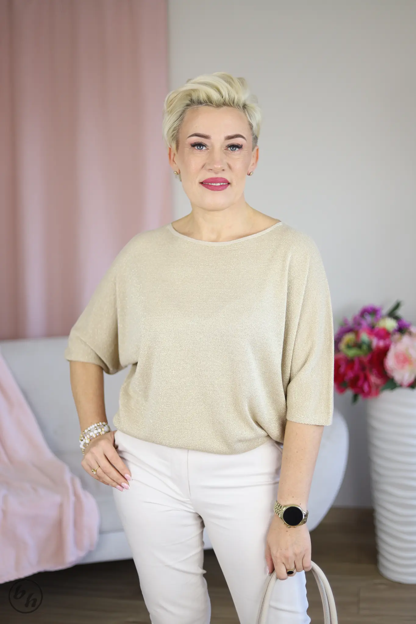 Bluzka damska błysk- pudrowy róż