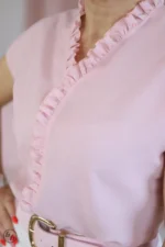 Bluzka damska falbana- pudrowy róż - Butik Halina