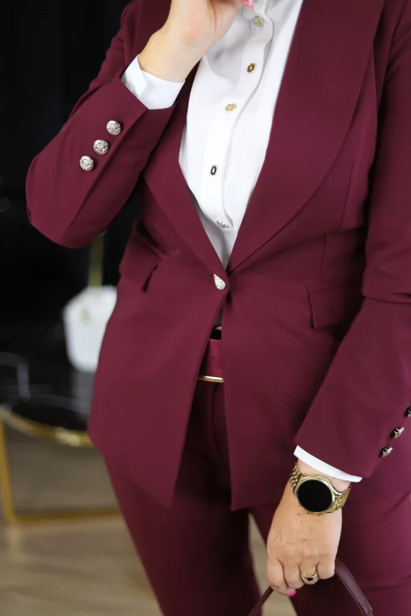 Marynarka damska to elegancki i stylowy element garderoby, który dodaje pewności siebie i klasy każdej kobiecie. Wykonana z wysokiej jakości materiałów, zapewniających komfort noszenia, ta marynarka jest idealnym wyborem na wiele okazji, zarówno formalnych, jak i nieformalnych. Marynarka posiada klasyczny krój, który podkreśla kobiecą sylwetkę. Jest lekko taliowana, co nadaje jej elegancji i doskonale podkreśla kobiece kształty. Długość marynarki sięga linii bioder, co dodaje jej uniwersalności i sprawia, że pasuje do różnych stylizacji.