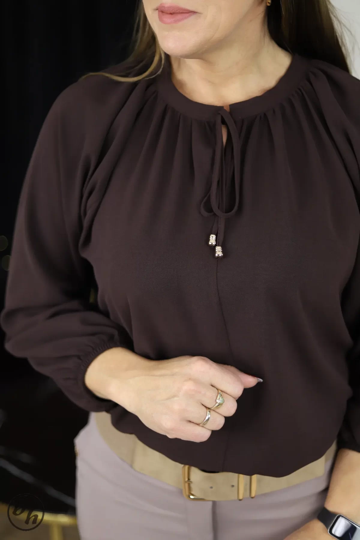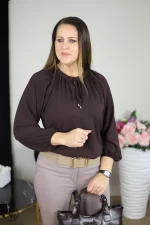 Bluzka damska wiązanie- czekoladowa - Butik Halina
