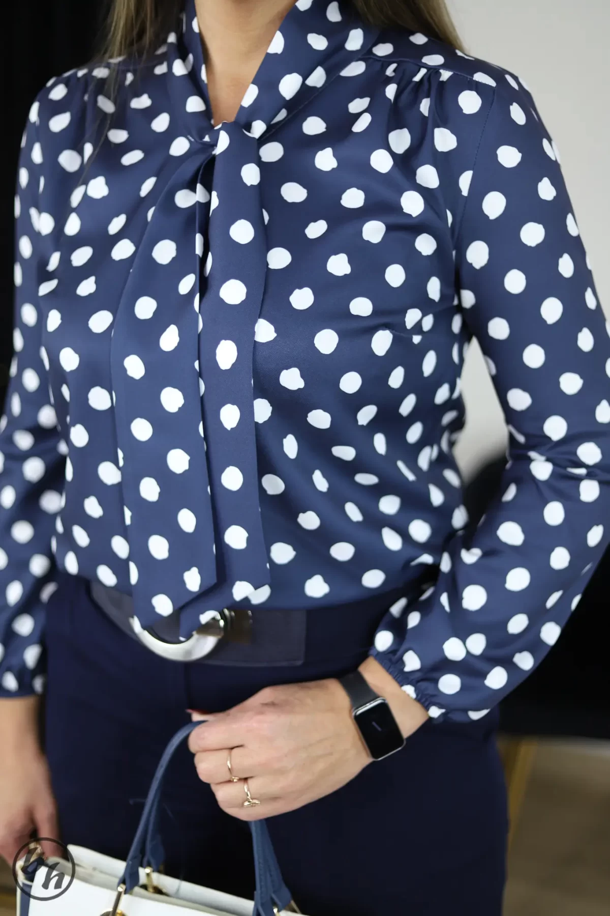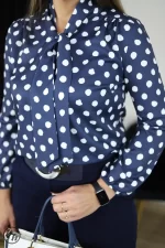 Strona główna Odzież elegancka Koszule/bluzki Bluzka damska wiązanie grochy- granatowa