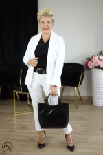 Marynarka damska, która idealnie dopasuję się do każdej sylwetki. Lekko przedłużana, nie zapinana. Klasyk i jeden z najbardziej kobiecych wzorów podkreślający talię i uwypuklający kobiece kształty. Model sprawdzi się na ważną imprezę okolicznościową jak również do jeansów.
