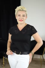 Ta urocza bluzka to doskonałe połączenie klasyki z romantycznym akcentem, idealne do stworzenia wielu stylowych zestawień. Połączenie z koronkowymi detalami sprawia, że bluzka jest zarówno elegancka, jak i niezwykle kobieca. Idealna na co dzień, do pracy, na spotkania towarzyskie czy wieczorne wyjścia.