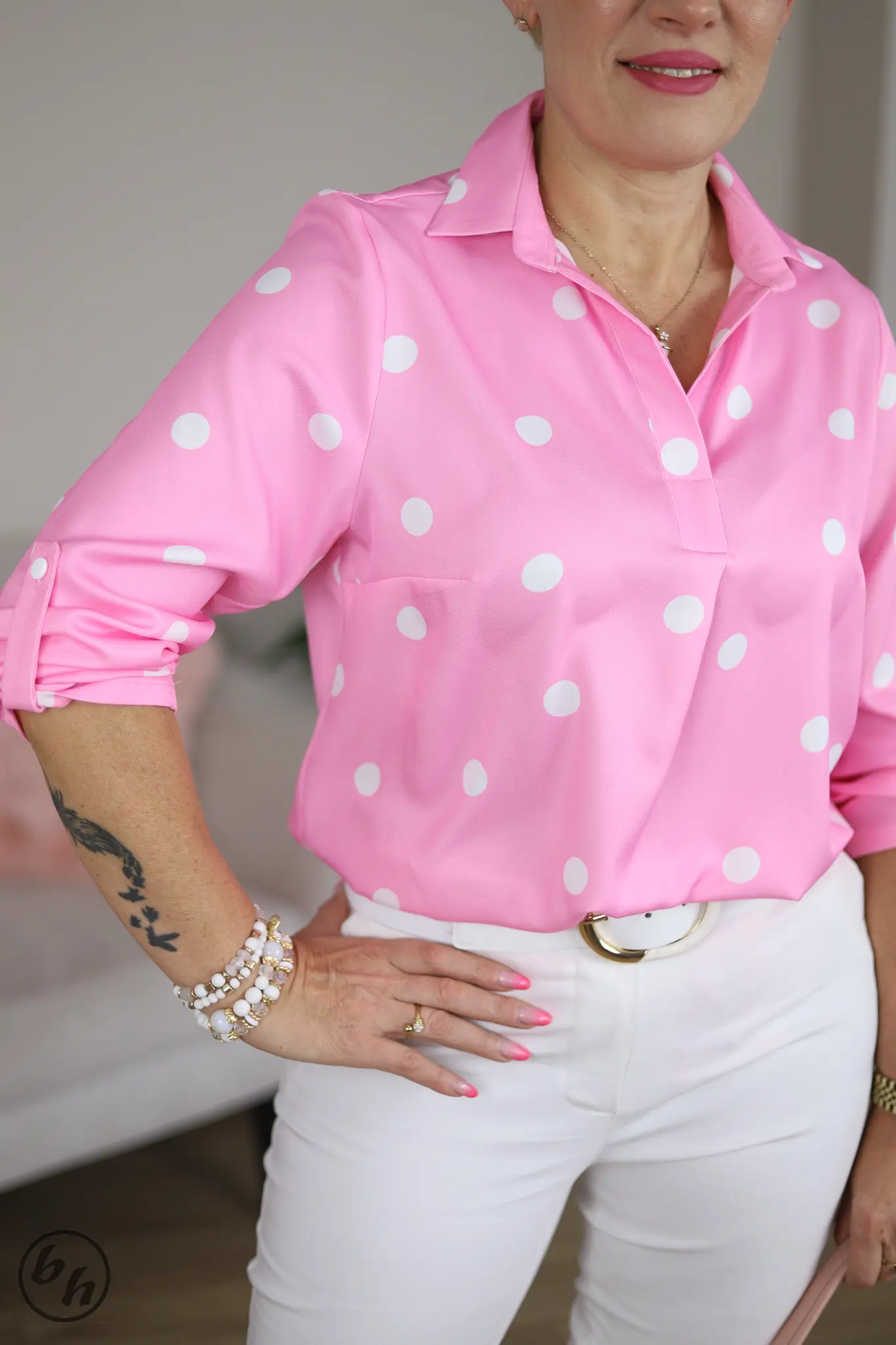 Bluzka szpic grochy- róż - Butik Halina