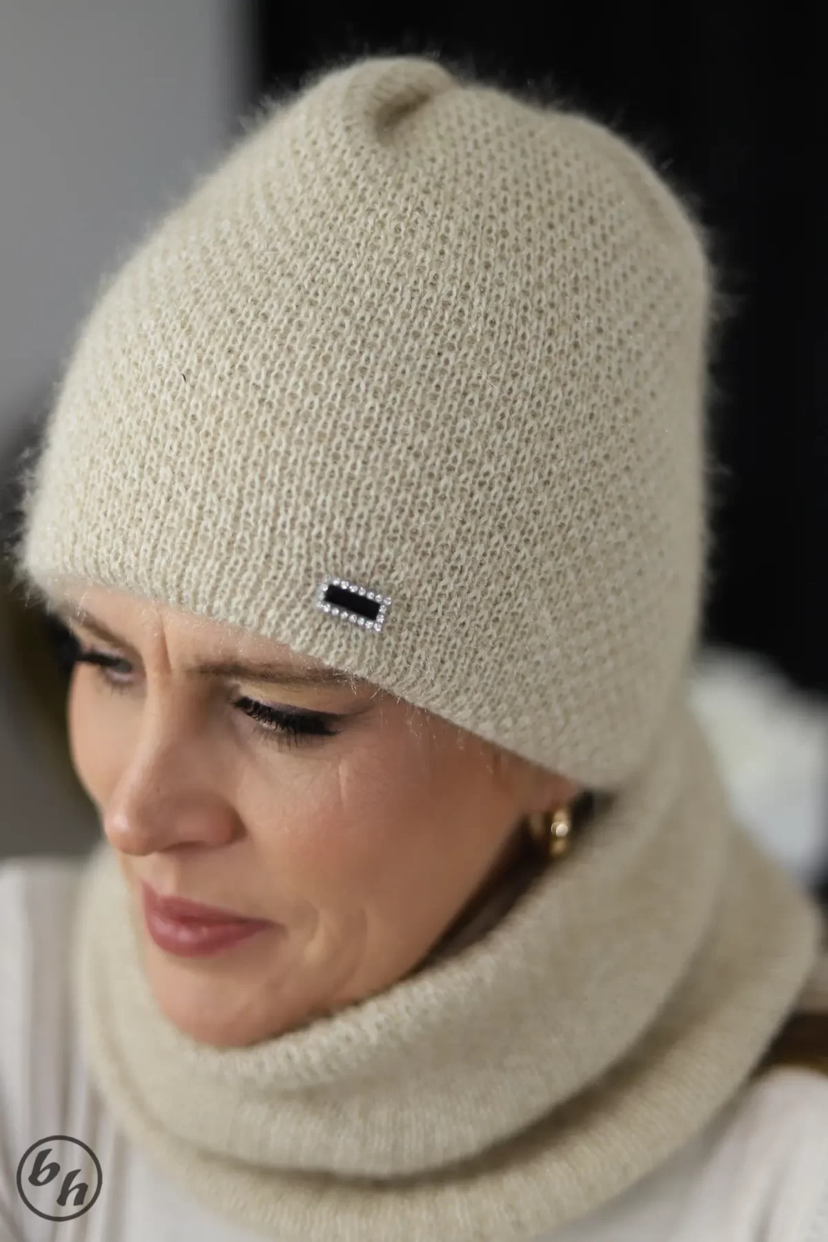 Strona główna Dodatki Chusty/czapki Czapka broszka z kominem- beżowa