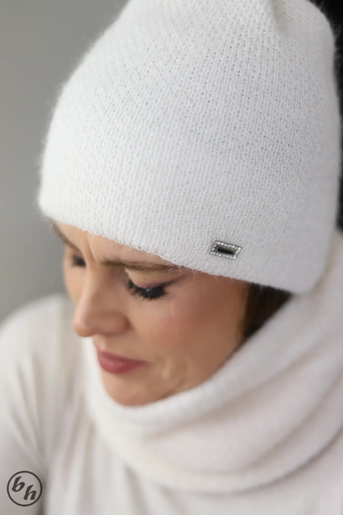 Strona główna Dodatki Chusty/czapki Czapka broszka z kominem- ecru