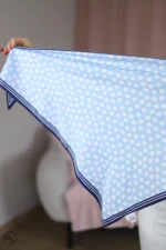 Strona główna Dodatki Chusty/czapki Gawroszka trójkąt- niebieska groszki