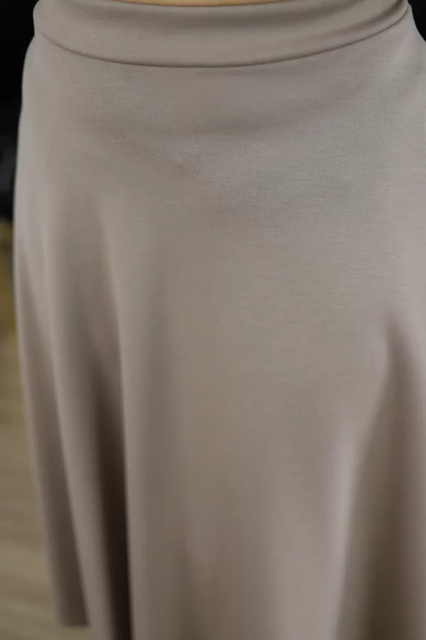 Spódnica midi o rozkloszowanym fasonie, sięgająca do połowy łydki. Wykonana jest z materiału, który pięknie układa się w ruchu. Taliowany fason podkreśla sylwetkę, a rozszerzający się dół dodaje jej elegancji i swobody. Spódnica idealnie sprawdzi się zarówno w stylizacjach codziennych, jak i bardziej formalnych, w zależności od dobranych dodatków.