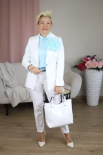 Stylowa, dopasowana koszula to niezbędny element kobiecej garderoby. Wykonana z wysokiej jakości materiału, zapewnia komfort noszenia przez cały dzień – zarówno w pracy, jak i na specjalne okazje. Posiada klasyczny kołnierzyk i zapięcie na guziki, które dodają całości elegancji. Świetnie prezentuje się zarówno wpuszczona w spodnie lub spódnicę, jak i noszona luźno.
