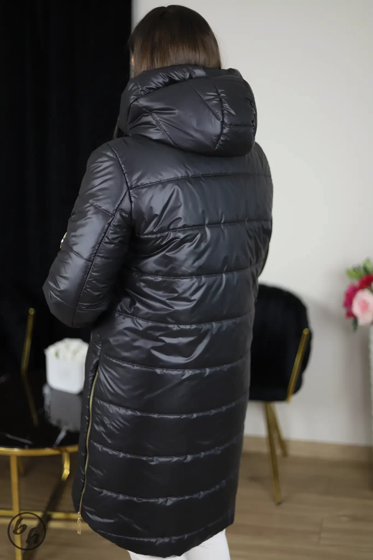 Pikowana kurtka to idealny wybór na chłodniejsze dni, łączący funkcjonalność z modnym designem. Ma ona dłuższy krój który zapewnia doskonałą ochronę przed wiatrem i zimnem, jednocześnie zachowując lekko taliowaną sylwetkę. Kurtka posiada duży, stały kaptur ze sznurkami do regulacji co tworzy wyraźny i nowoczesny kontrast. Ozdobna naszywka na ramieniu dodaje jej sportowego, casualowego charakteru. Jest to idealny element garderoby, który pozwoli zachować ciepło i styl podczas jesiennych i zimowych miesięcy.