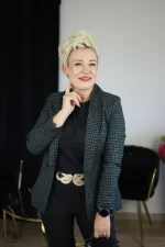 Marynarka damska to elegancki i stylowy element garderoby, który dodaje pewności siebie i klasy każdej kobiecie. Wykonana z wysokiej jakości materiałów, zapewniających komfort noszenia, ta marynarka jest idealnym wyborem na wiele okazji, zarówno formalnych, jak i nieformalnych. Marynarka posiada klasyczny krój, który podkreśla kobiecą sylwetkę. Jest lekko taliowana, co nadaje jej elegancji i doskonale podkreśla kobiece kształty. Długość marynarki sięga linii bioder, co dodaje jej uniwersalności i sprawia, że pasuje do różnych stylizacji.