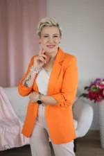 Czerwona marynarka damska to elegancki i stylowy element garderoby, który dodaje pewności siebie i klasy każdej kobiecie. Wykonana z wysokiej jakości materiałów, zapewniających komfort noszenia, ta marynarka jest idealnym wyborem na wiele okazji, zarówno formalnych, jak i nieformalnych. Marynarka posiada klasyczny krój, który podkreśla kobiecą sylwetkę. Jest lekko taliowana, co nadaje jej elegancji i doskonale podkreśla kobiece kształty. Długość marynarki sięga linii bioder, co dodaje jej uniwersalności i sprawia, że pasuje do różnych stylizacji.