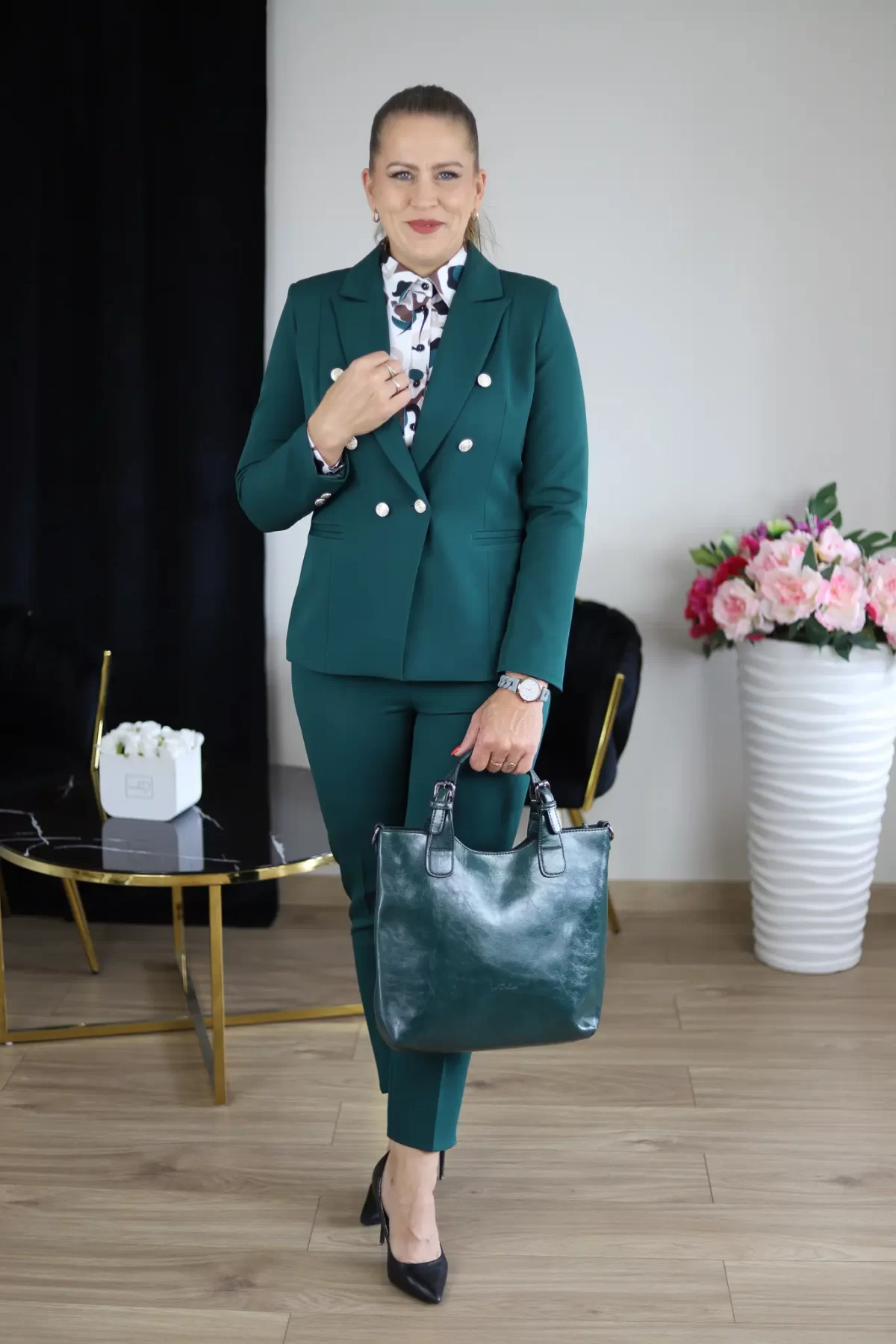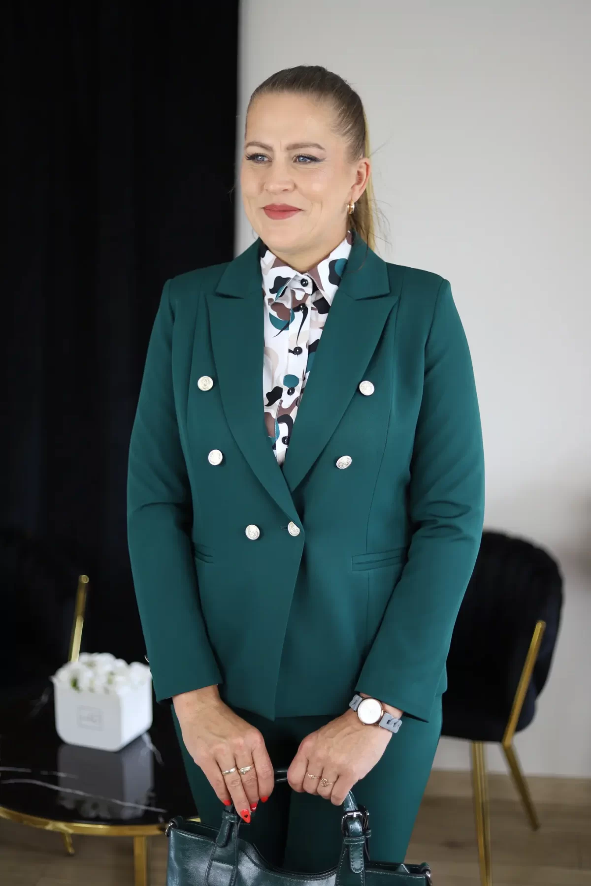Garnitur damski dwurzędowy- butelkowa zieleń