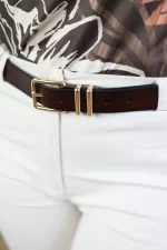 Elegancki pasek wykonany z wysokiej jakości skóry, wyróżniający się solidnym wykonaniem i ponadczasowym stylem. Klasyczna klamra w metalicznym odcieniu nadaje mu szyku i sprawia, że idealnie dopełnia zarówno eleganckie stylizacje, jak i codzienne zestawy. To uniwersalny dodatek, który podkreśli talię i doda charakteru każdej stylizacji.
