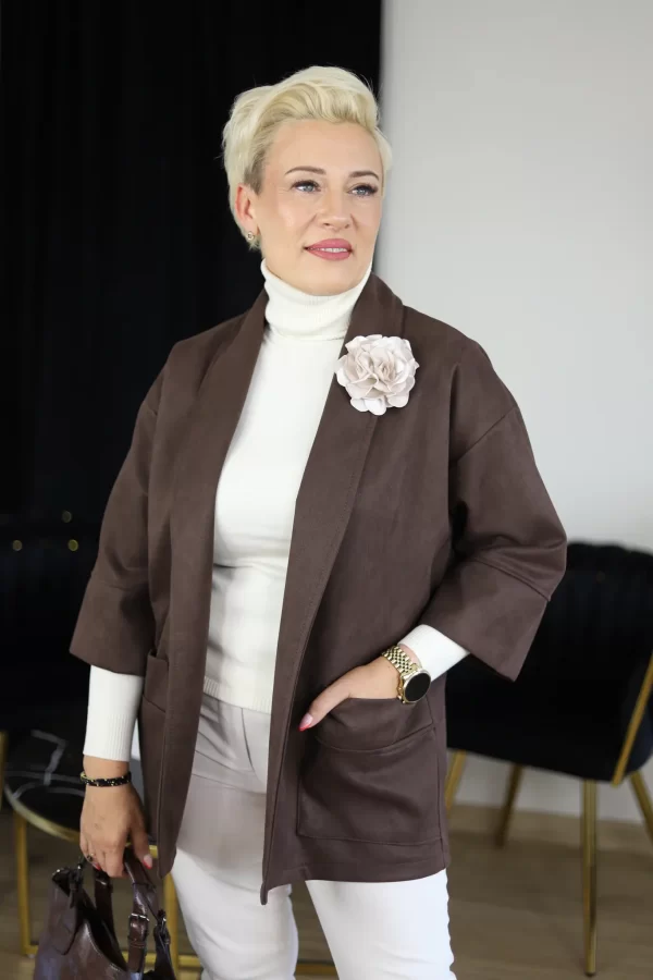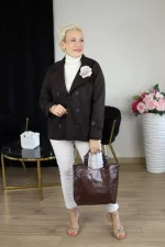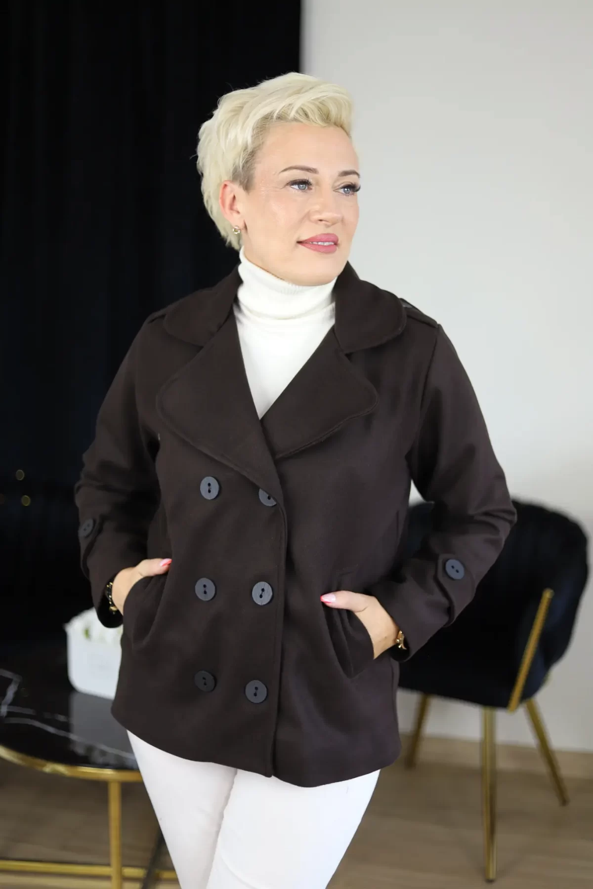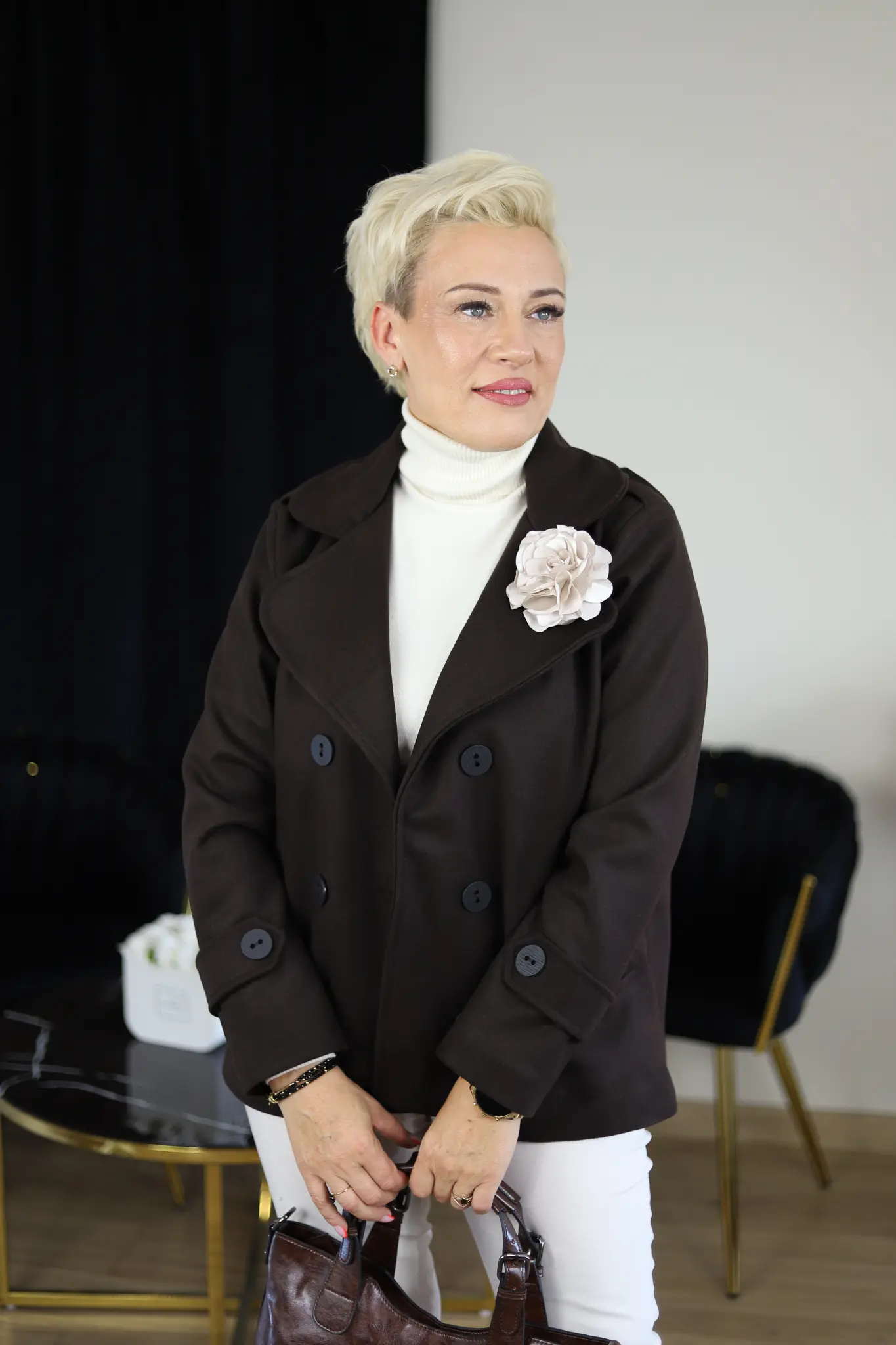 Płaszcz damski krótki- czekoladowy - Butik Halina