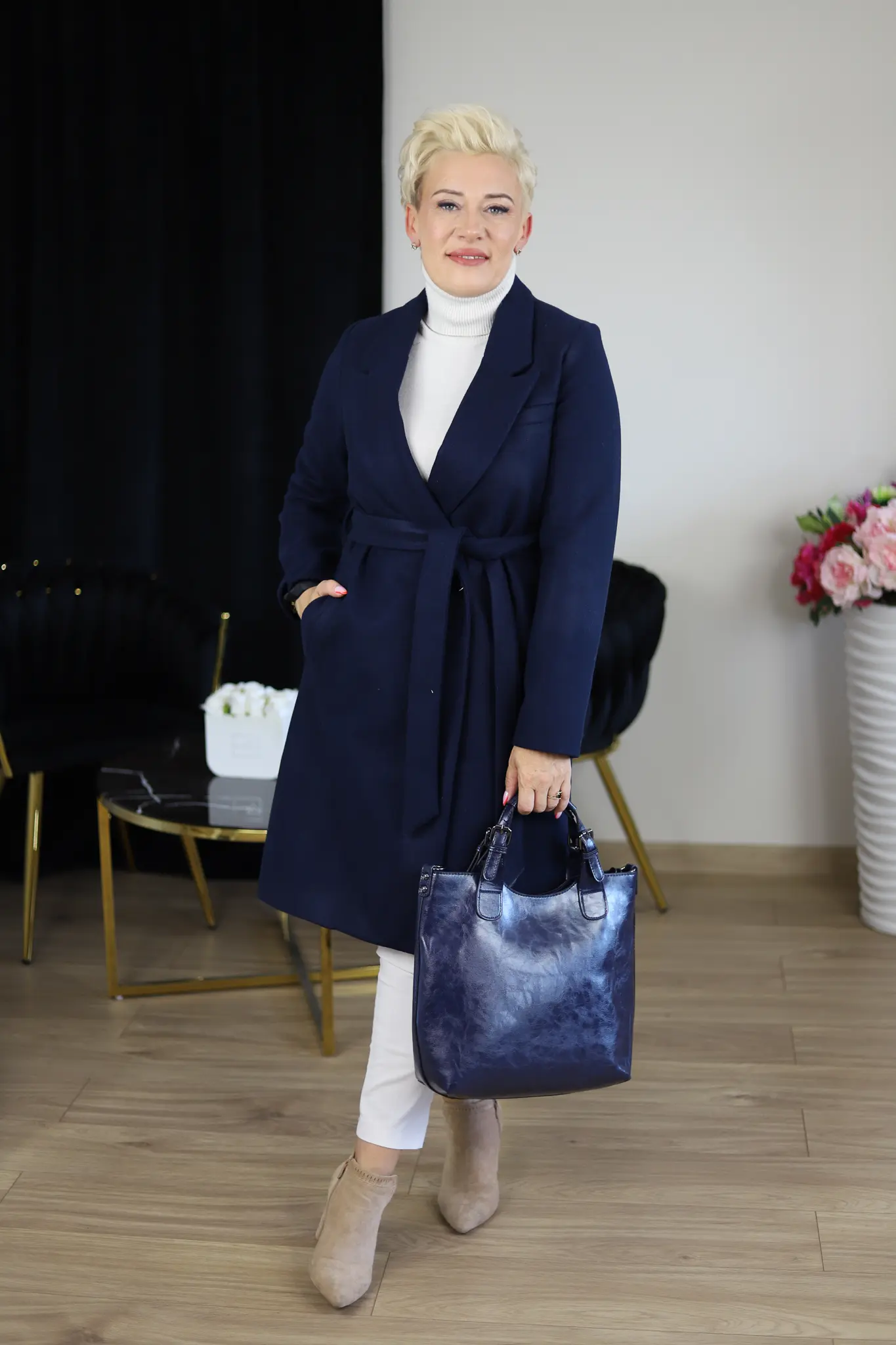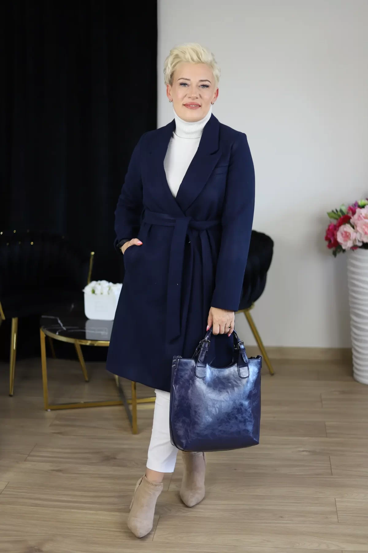 Płaszcz klasyczny- granatowy - Butik Halina