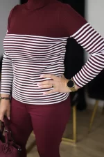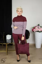 Półgolf damski prążek paski- bordo - Butik Halina