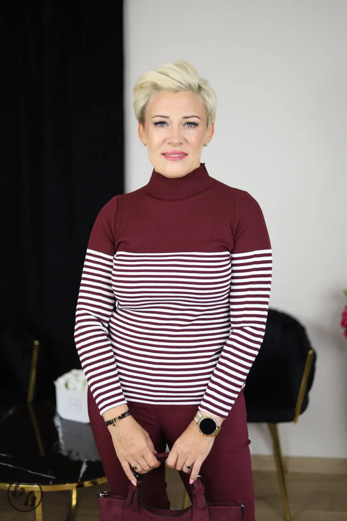 Strona główna Styl na co dzień Bluzki/Sweterki/Kardigany Półgolf damski prążek paski- bordo
