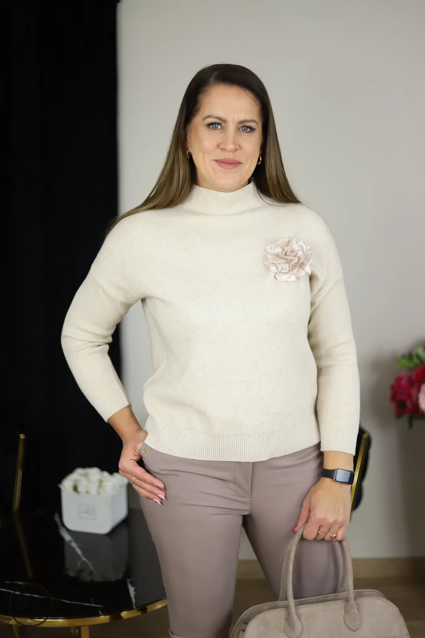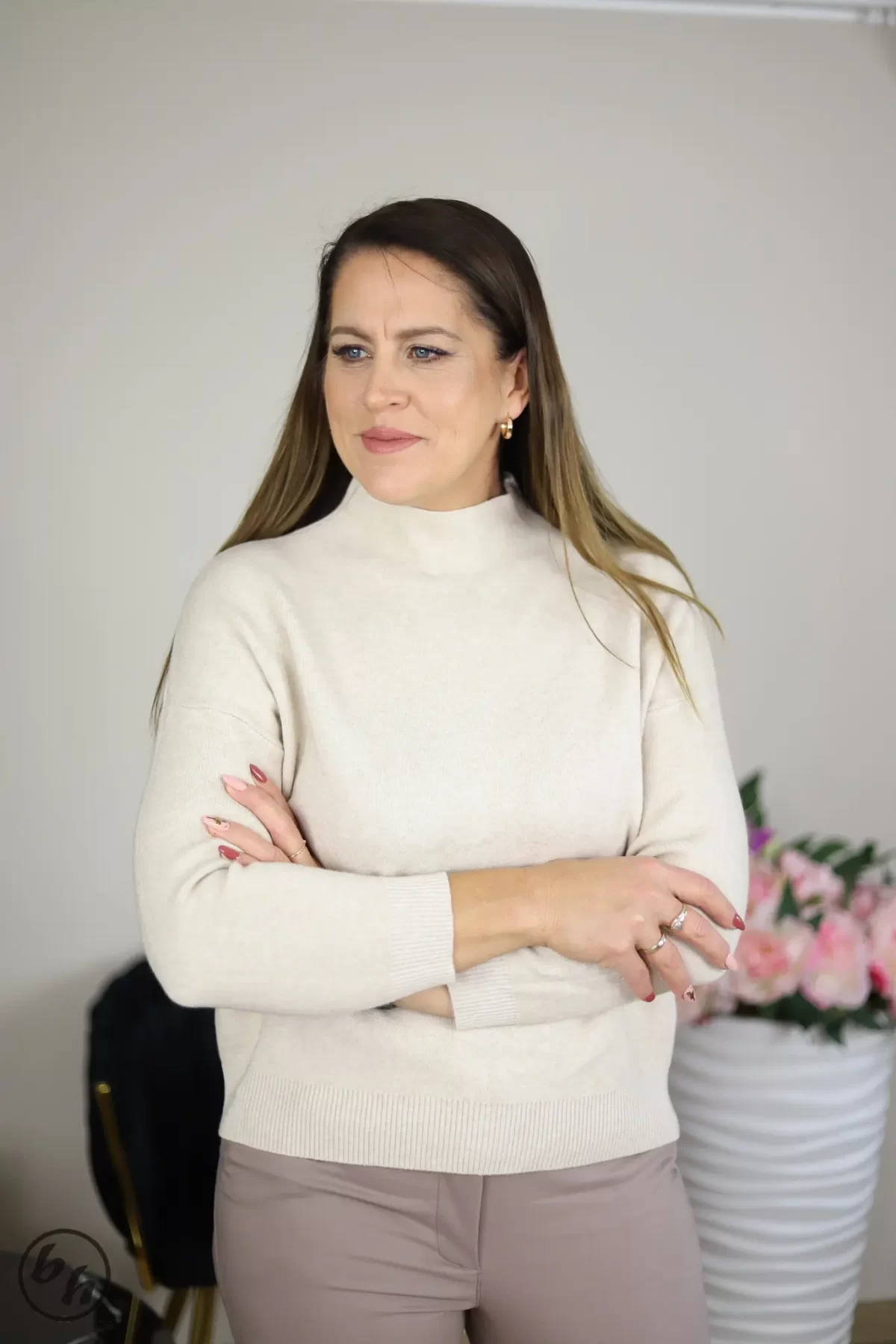 Uniwersalny sweter z dekoltem typu półgolf to idealny wybór, by dodać szyku codziennym i bardziej eleganckim stylizacjom. Klasyczny fason zapewnia komfort i swobodę ruchów przy zachowaniu modnego, kobiecego wyglądu. Idealny na chłodniejsze dni, z delikatnie opadającą linią ramion dla nowoczesnego looku.