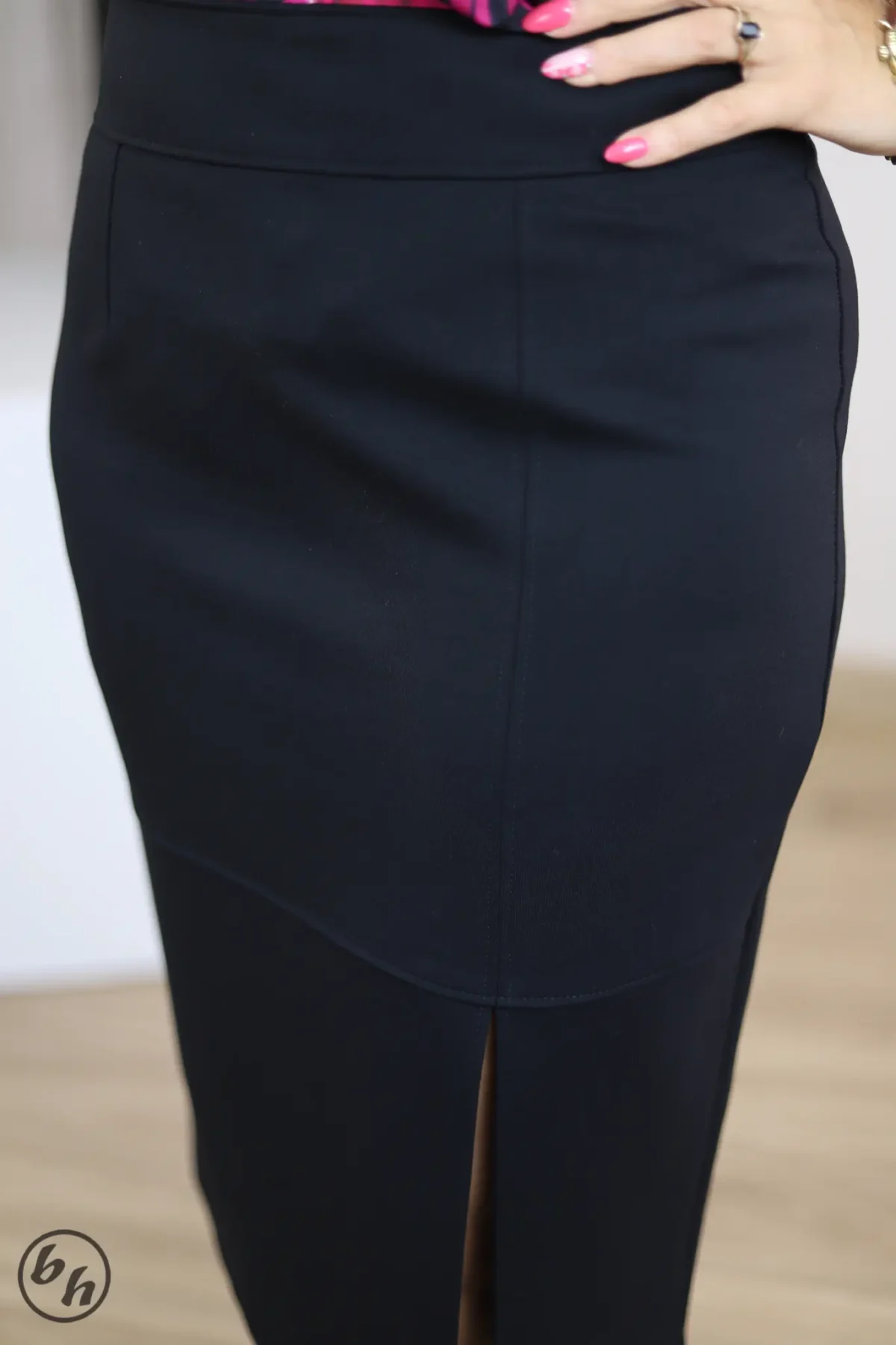 Spódnica dzianinowa rozporek- czarna - Butik Halina