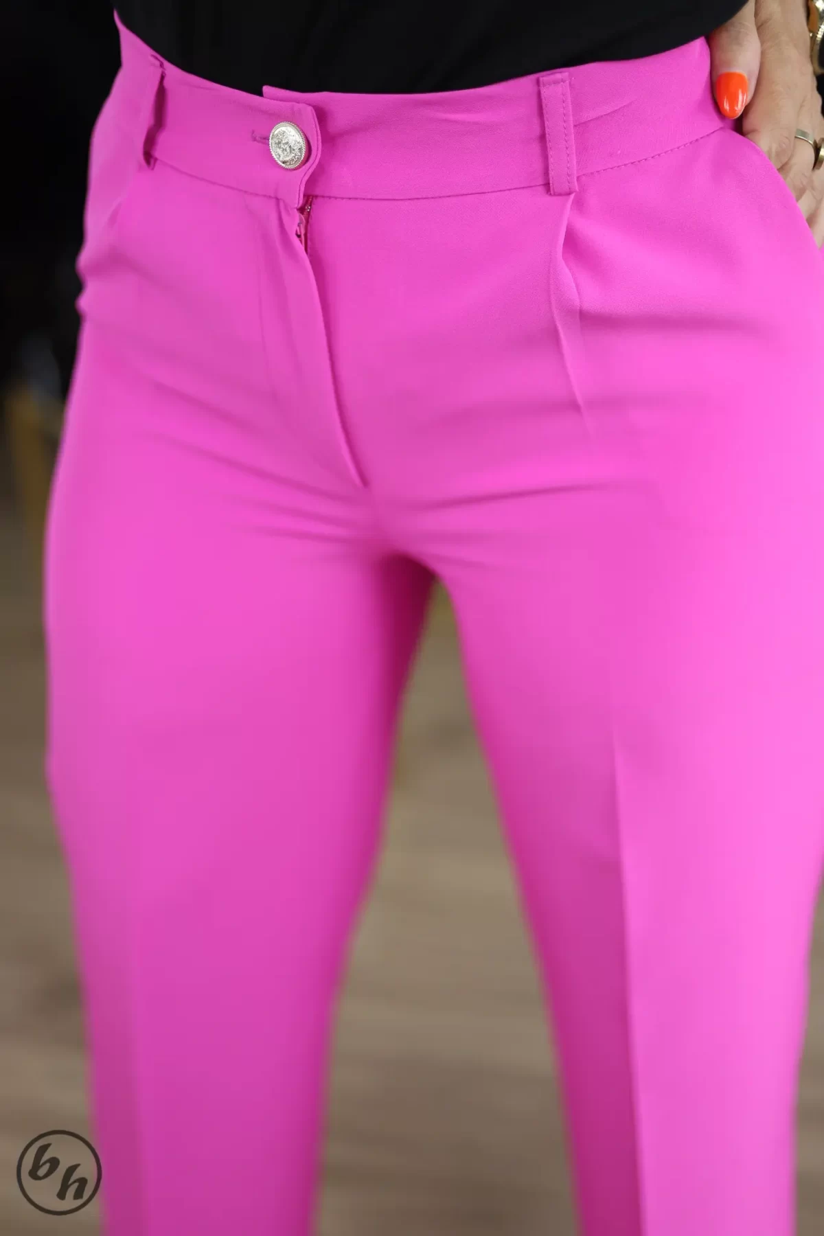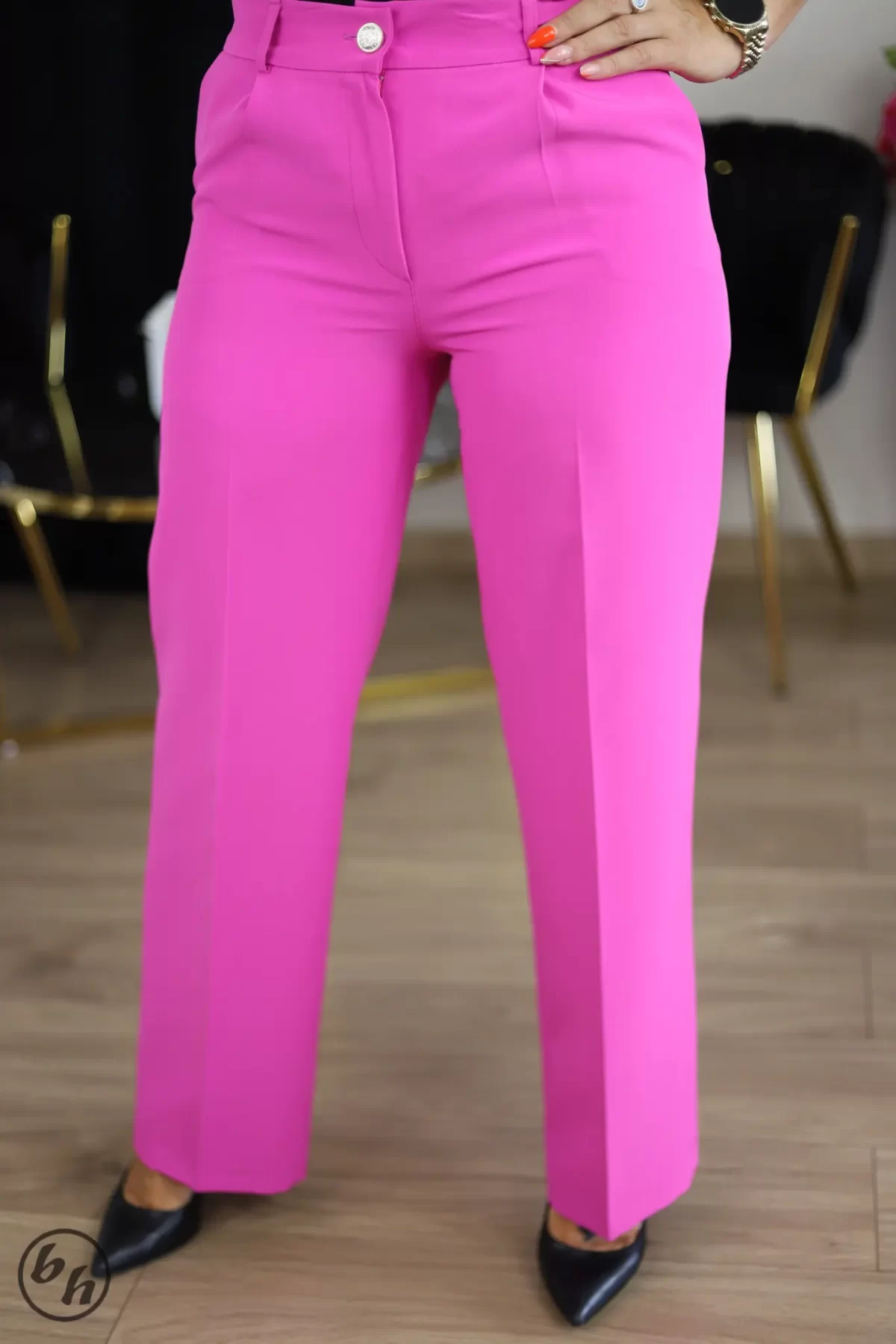 Luźny fason. Nie zapinany żakiet z klasycznymi klapami, lekko przedłużany. Z rękawem trzy czwarte z podpięciem. Spodnie z gumką w pasie oraz dwoma bocznymi kieszeniami. Tworzą piękny, elegancki i bardzo szykowny damski garnitur, który sprawdzi się na wiele okazji.