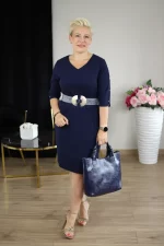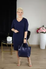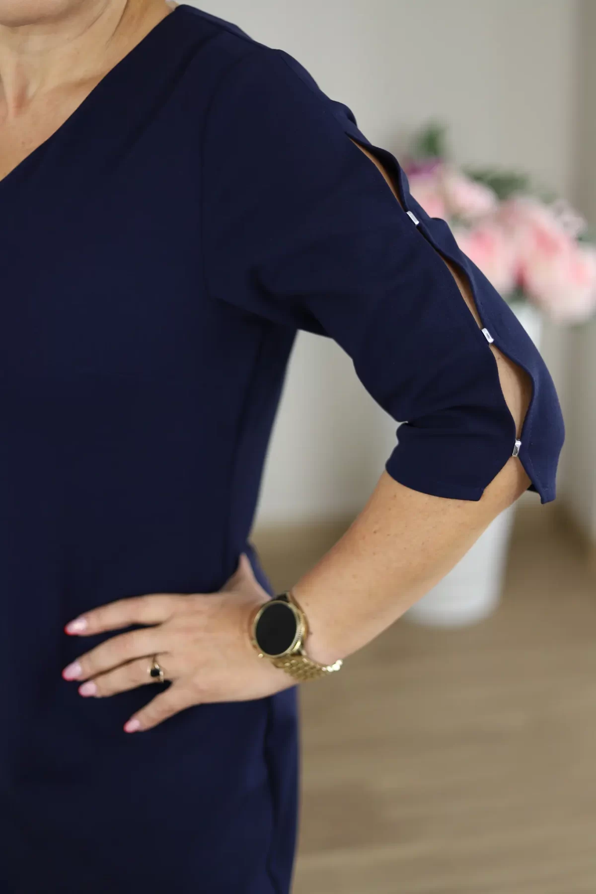 Sukienka ozdobny rękaw- granatowa - Butik Halina