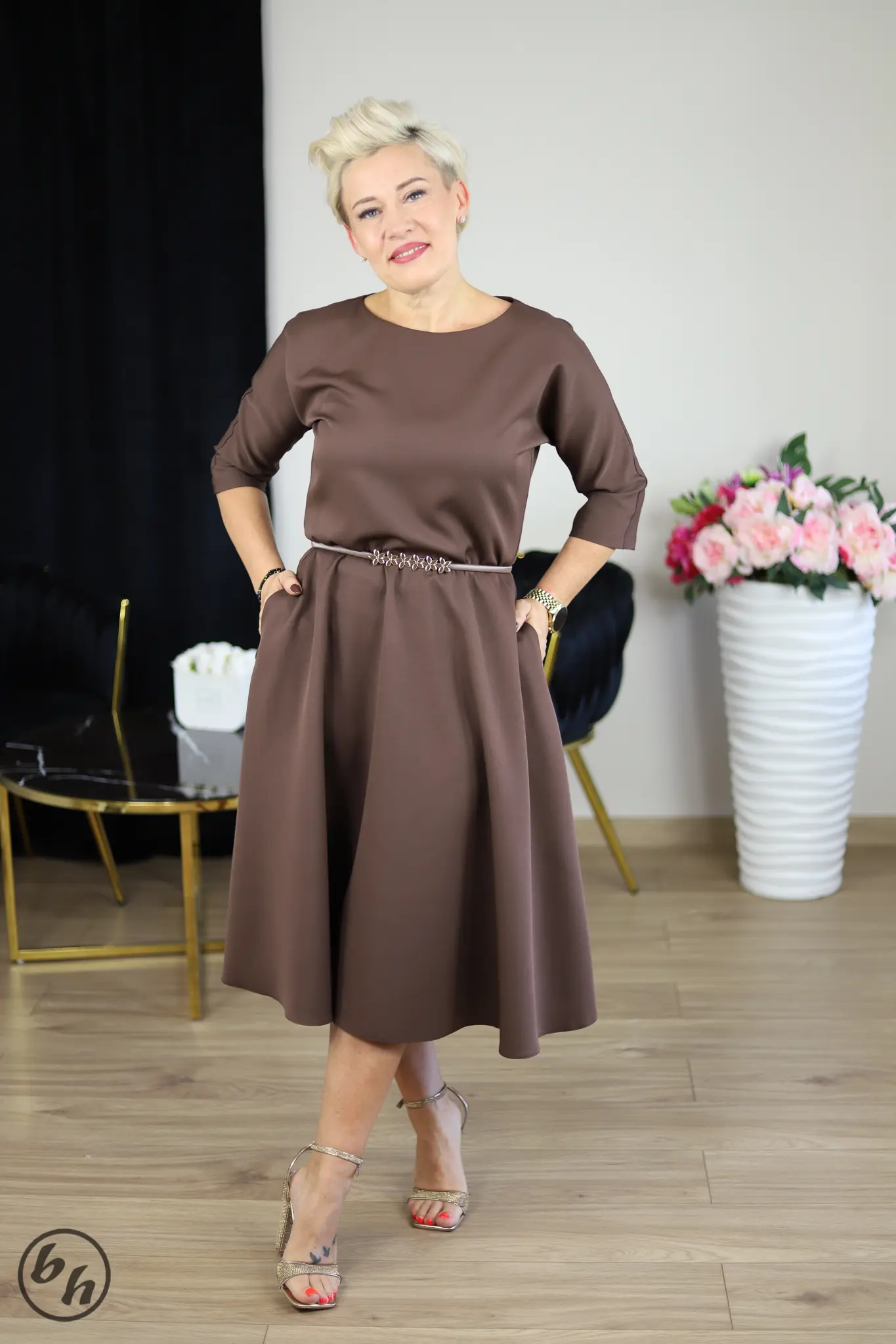 Sukienka puszczona gładka- czekoladowa - Butik Halina