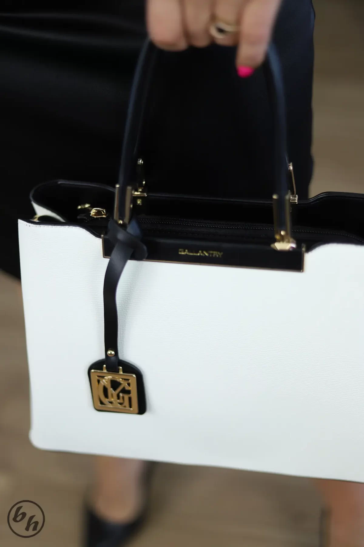 Ta elegancka torebka ma trzy główne komory. Dwie z nich są otwarte, co zapewnia łatwy i szybki dostęp do przechowywanych w nich przedmiotów. Pomiędzy nimi znajduje się środkowa komora, zamykana na zamek błyskawiczny, idealna do bezpiecznego przechowywania ważnych drobiazgów.