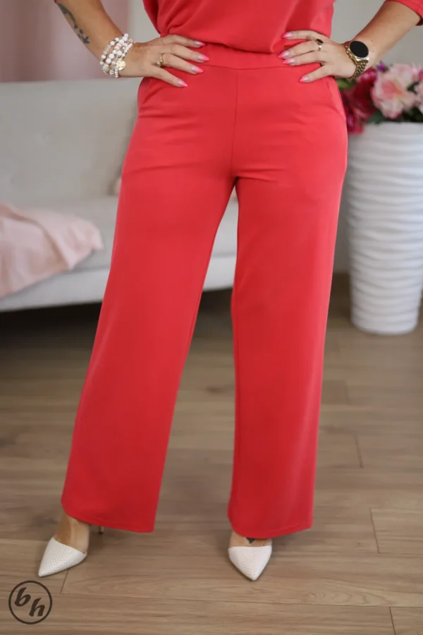 Wyjątkowy komplet dla kobiet, które cenią sobie wyrafinowany minimalizm i najwyższy komfort noszenia. Zestaw składa się z nowoczesnej tuniki oraz szerokich, lejących spodni, tworząc spójną i niezwykle efektowną sylwetkę typu "total look". Górna część kompletu wyróżnia się unikalnym wiązaniem w talii. Luźniejszy fason z krótkimi rękawami. Szerokie nogawki spodni dodają całości posągowego charakteru i optycznie wydłużają nogi.